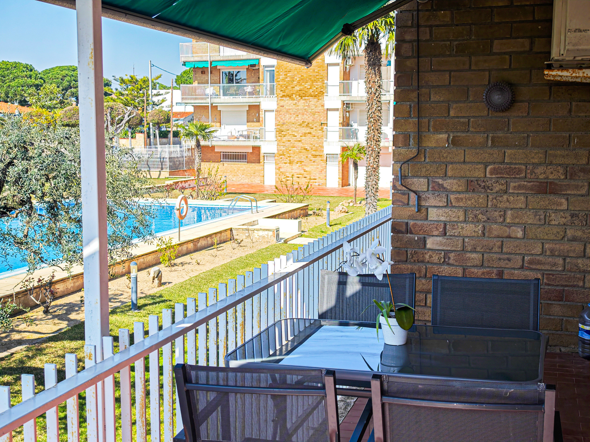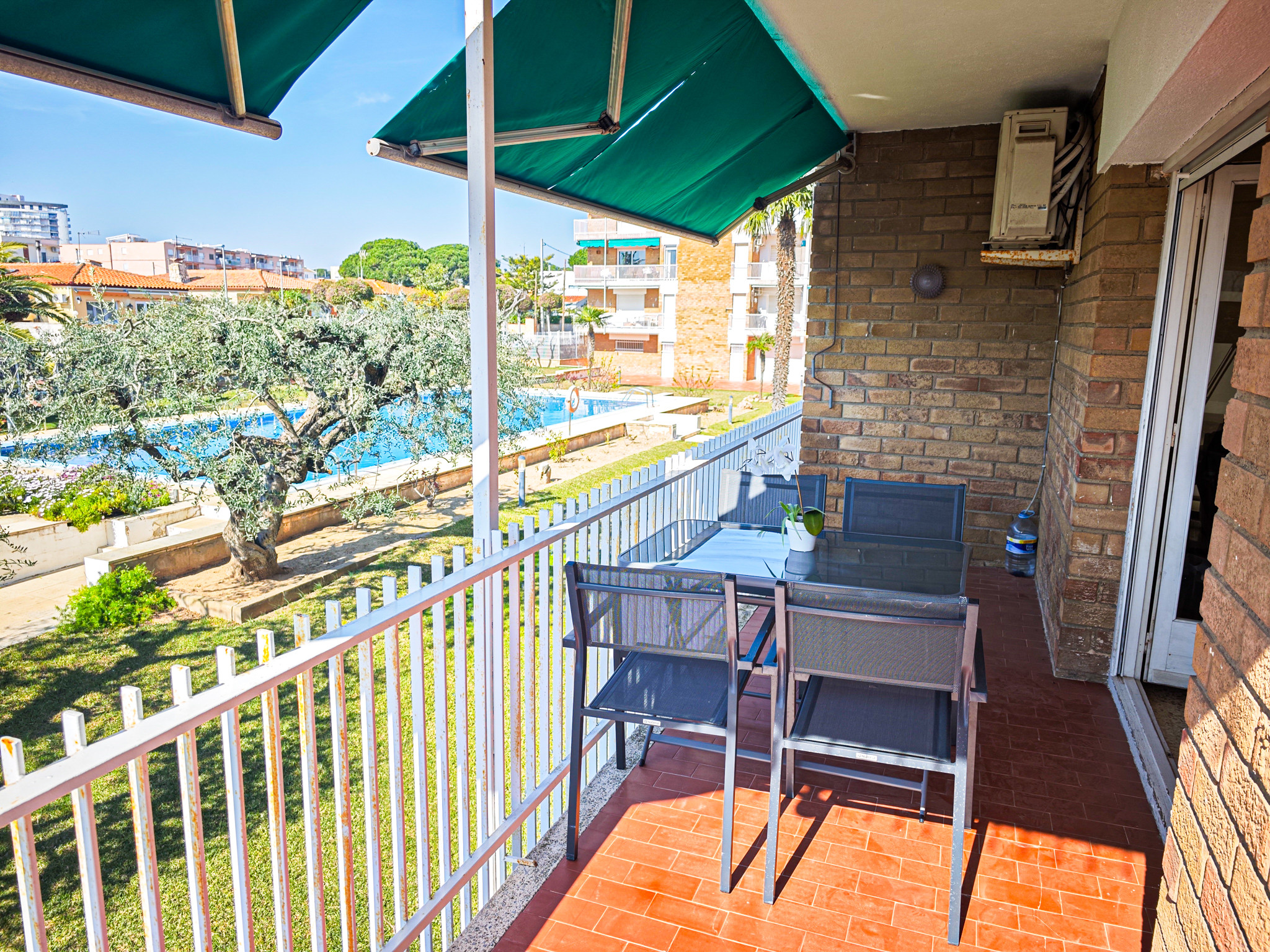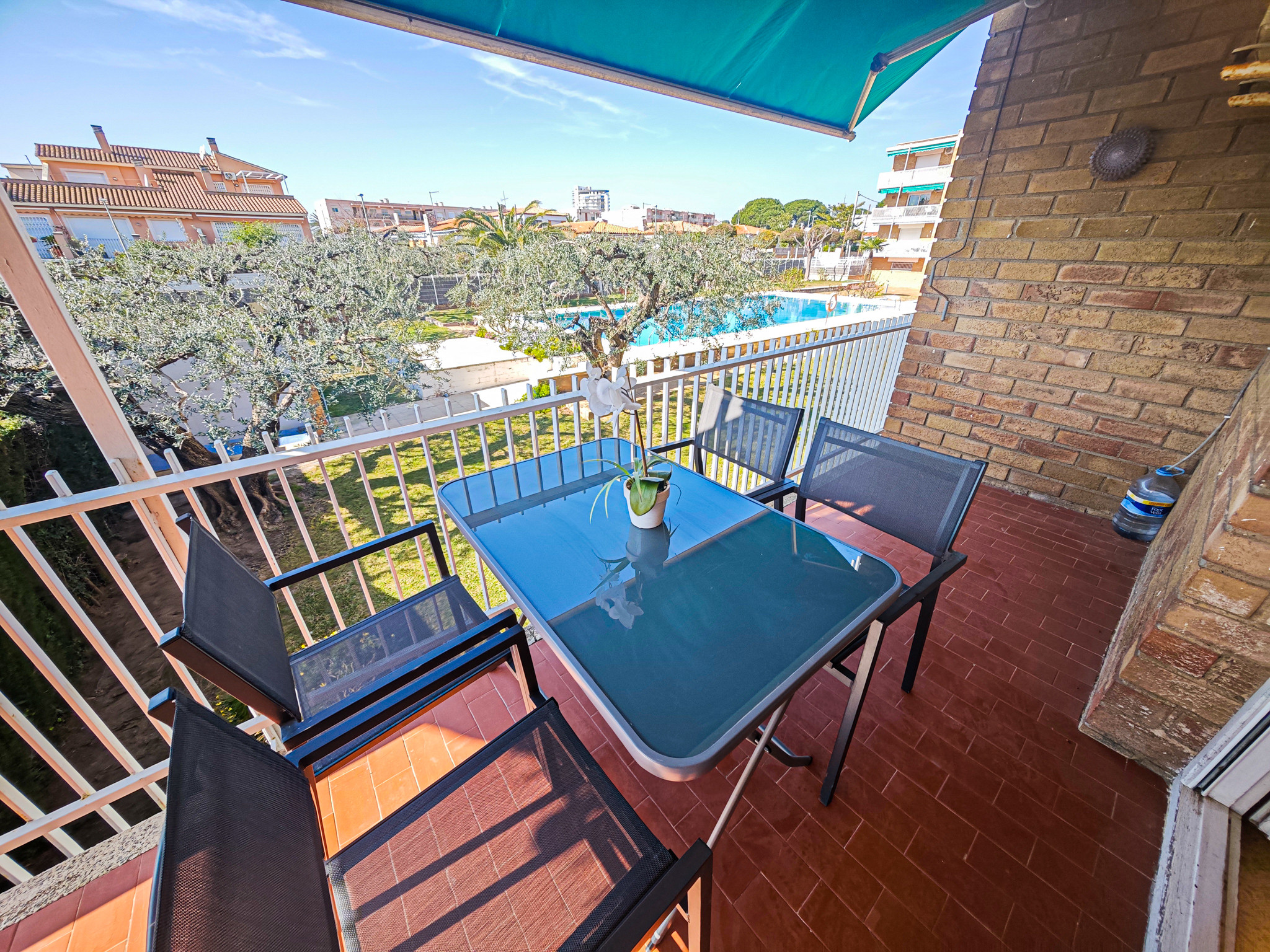 Uno de los grandes atractivos del apartamento es su luminosidad: es súper soleado y cuenta con dos terrazas ideales para disfrutar del aire libre. La terraza principal, situada frente a la piscina, es perfecta para desayunar al sol o relajarse al atardecer con vistas despejadas.