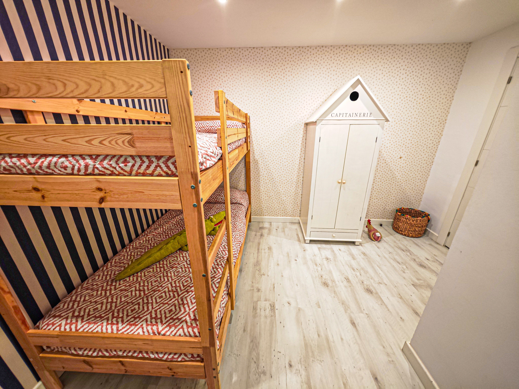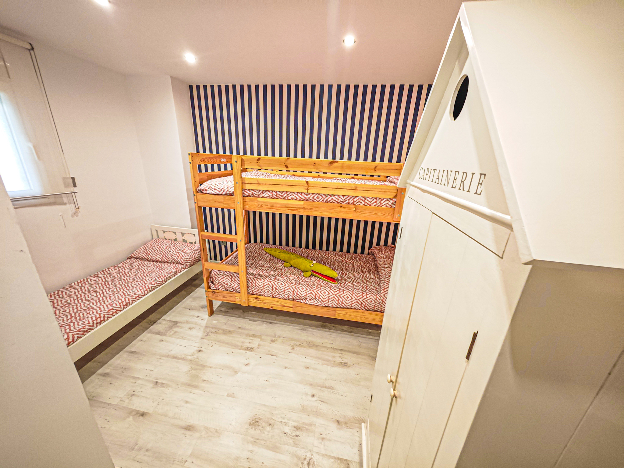 В квартире есть 2 спальни с двуспальными кроватями, 1 спальня с двухъярусной кроватью и еще одна спальня с односпальной кроватью.