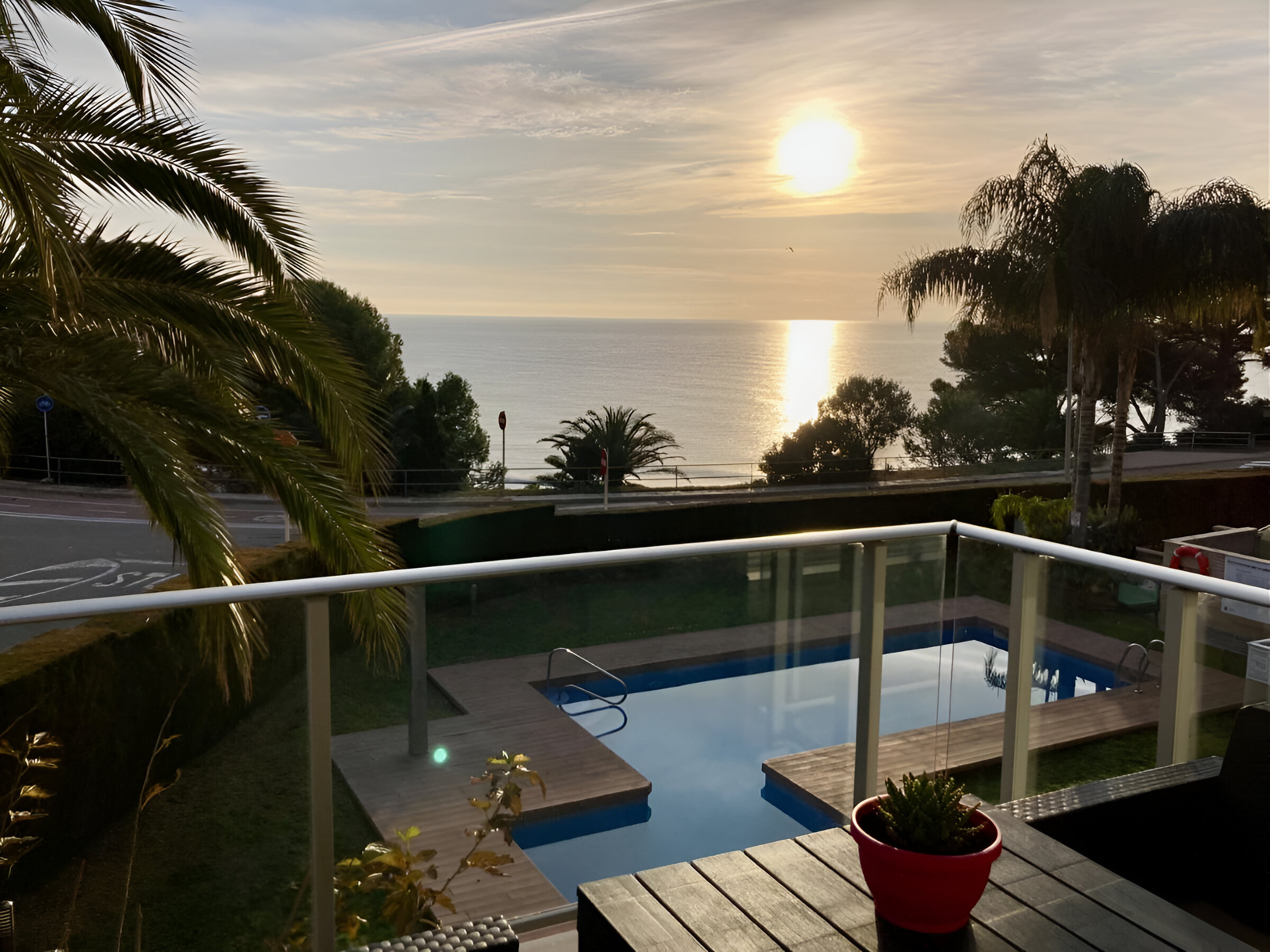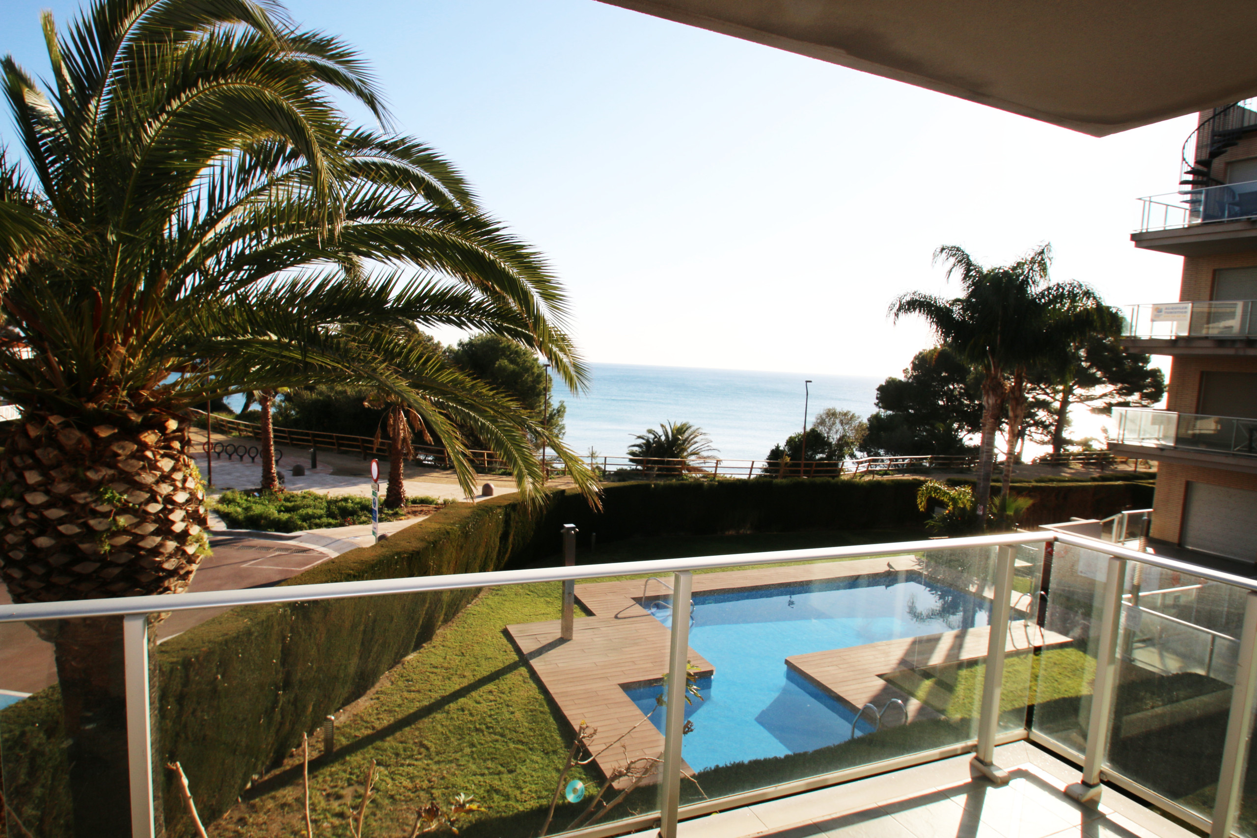 Bel appartement situé sur la digue, avec vue sur la piscine et la mer.