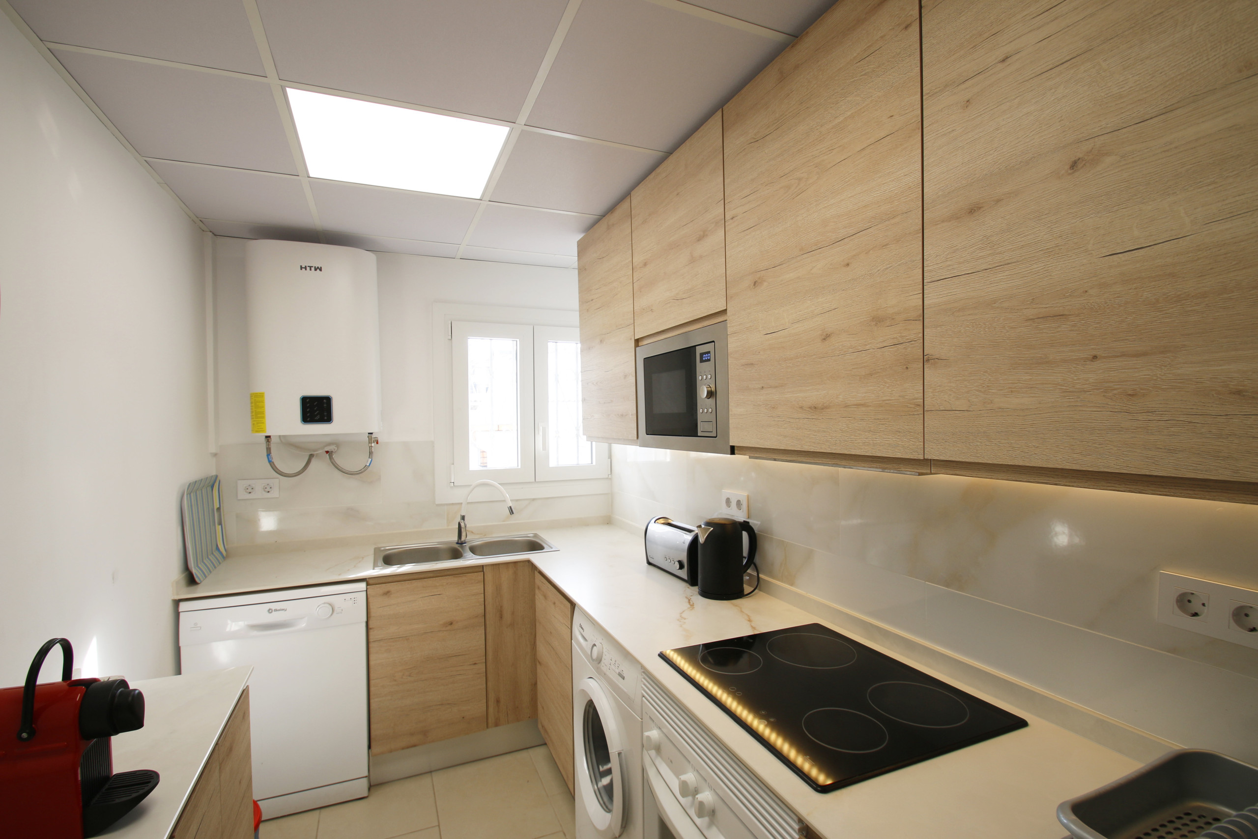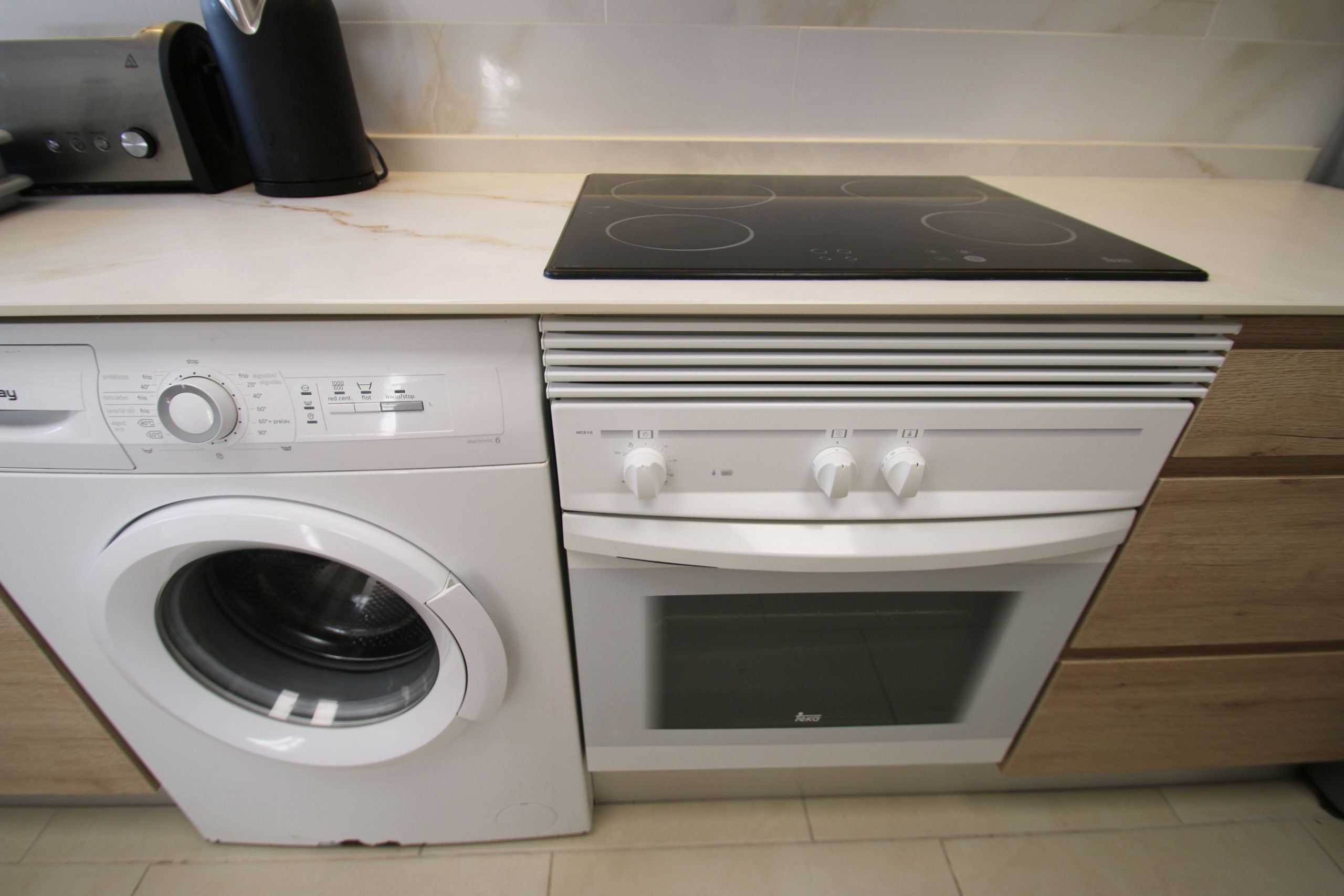 Sehr gut ausgerüstete Küche mit Spühlmaschine, Waschmaschine, Backofen, Mikrowelle, Kühlschrank, Kaffeemaschine Toaster...