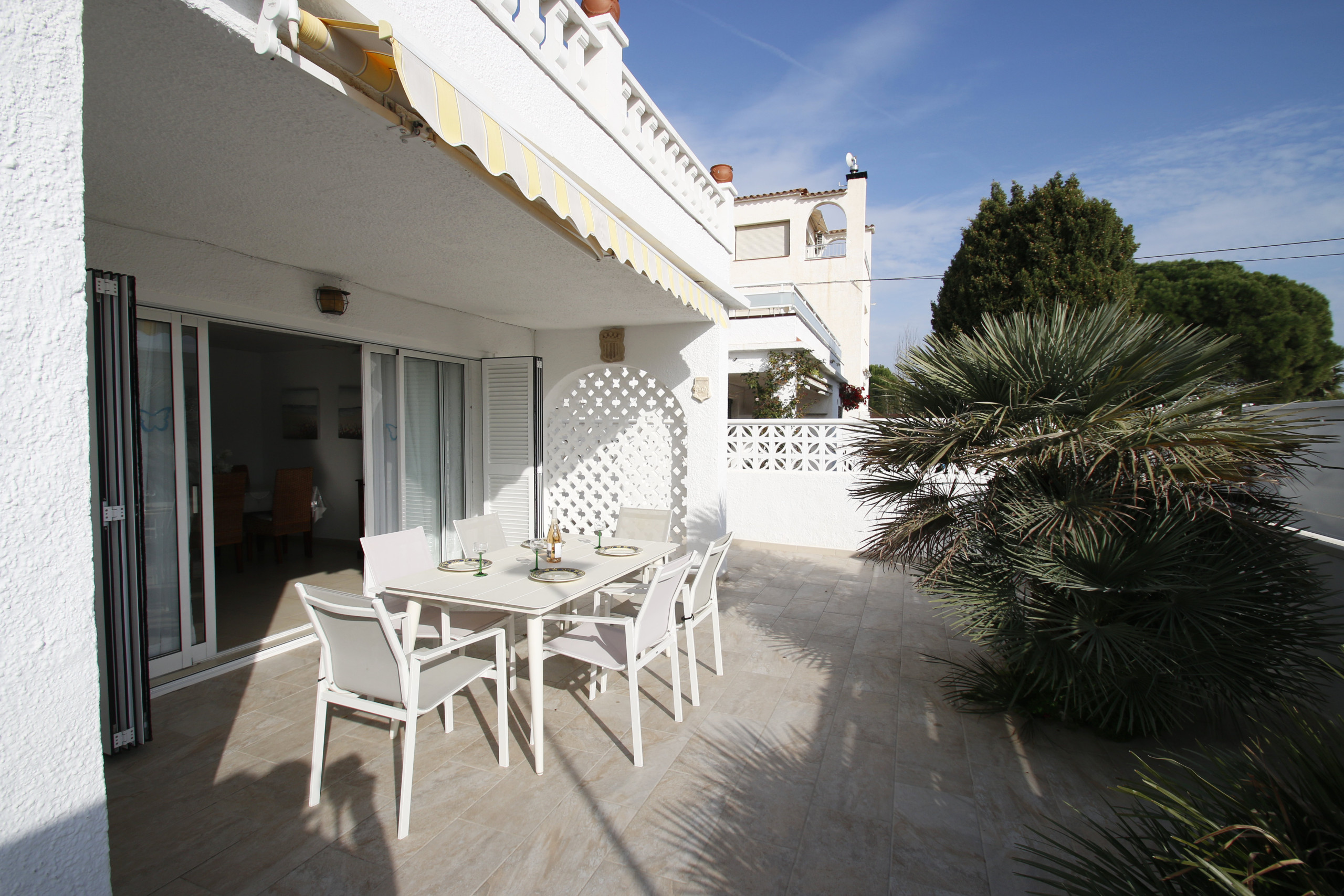 Appartement en RDC spacieux, idéal pour 4 personnes. Très propre, climatisation appréciée.Terrasse pratique et sans vis à vis. Plage à proximité mais il y a des rochers dans l'eau.