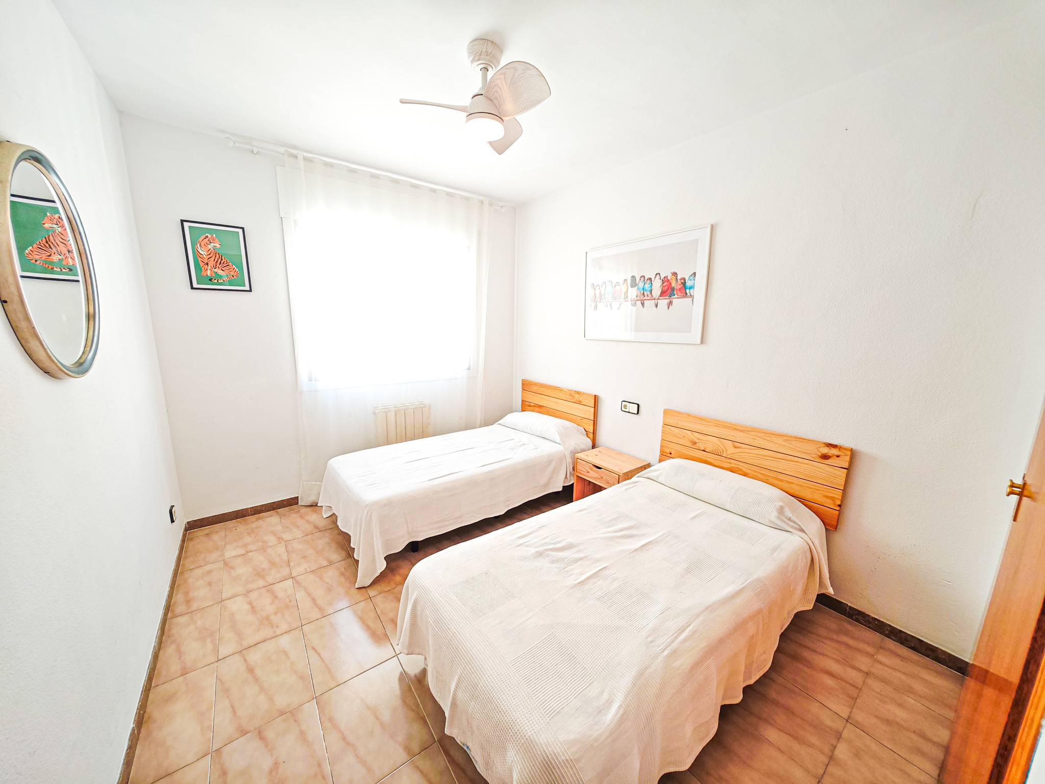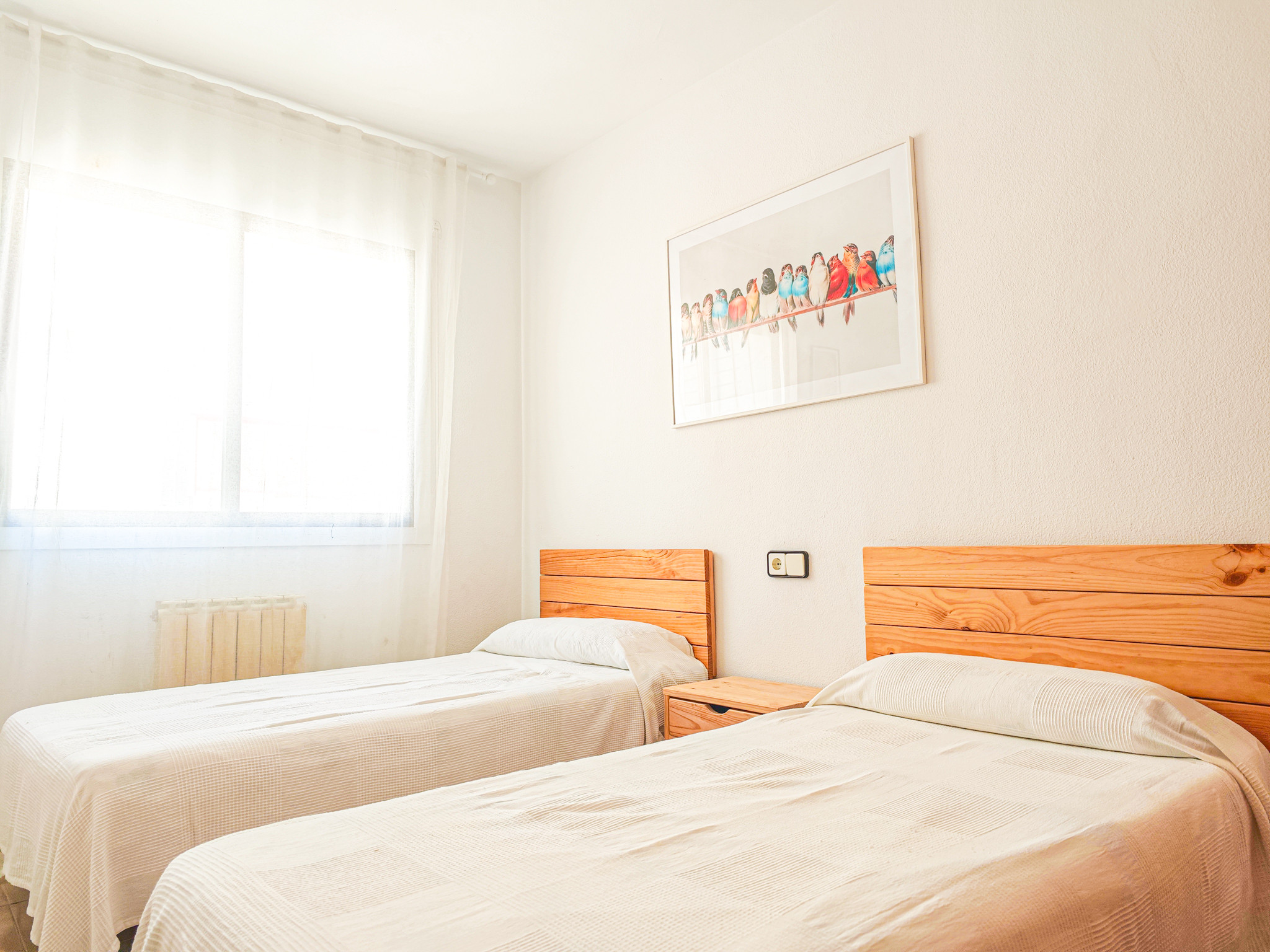 L'appartement dispose de 4 chambres pouvant accueillir jusqu'à 8 personnes, réparties avec 1 lit double, 6 lits individuels et 1 lit d'appoint. Idéal pour les grandes familles ou les groupes d'amis qui souhaitent profiter ensemble de leurs vacances.