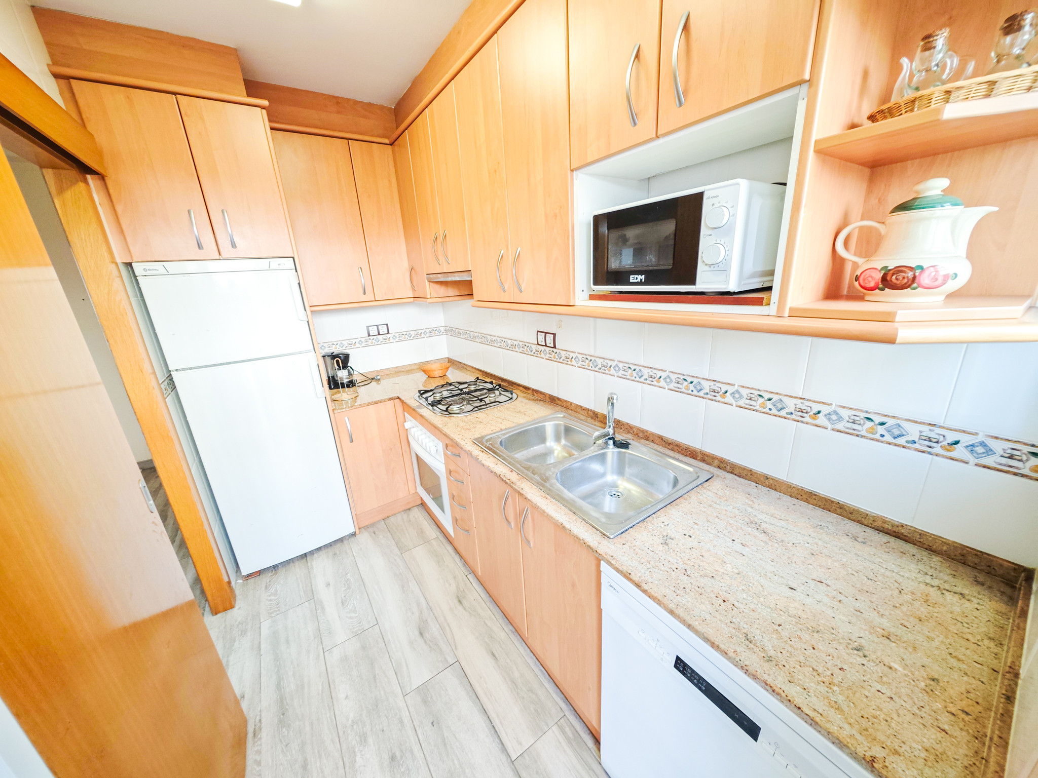 La cuisine, entièrement équipée, est un espace indépendant avec une plaque vitrocéramique et dispose d'électroménagers de première qualité tels que réfrigérateur, machine à laver, congélateur, machine à café, four, lave-vaisselle, micro-ondes, grille-pain et vaisselle complète. Idéale pour préparer de délicieux repas en famille.
