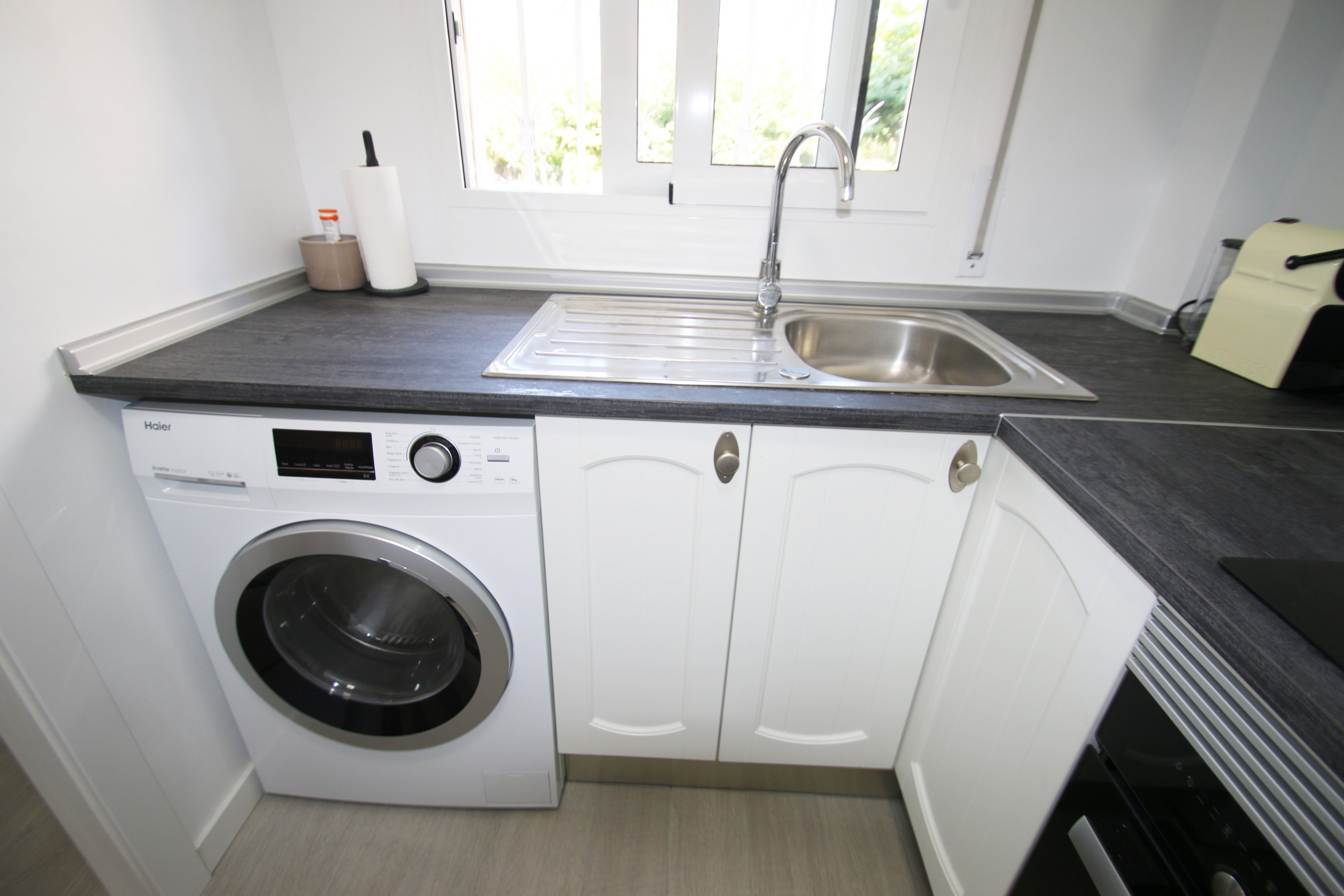 In the vitroceramic independent kitchen, refrigerator, microwave, oven, freezer, washing machine, dishwasher, dishes/cutlery, kitchen utensils, coffee machine, toaster and kettle are provided.
