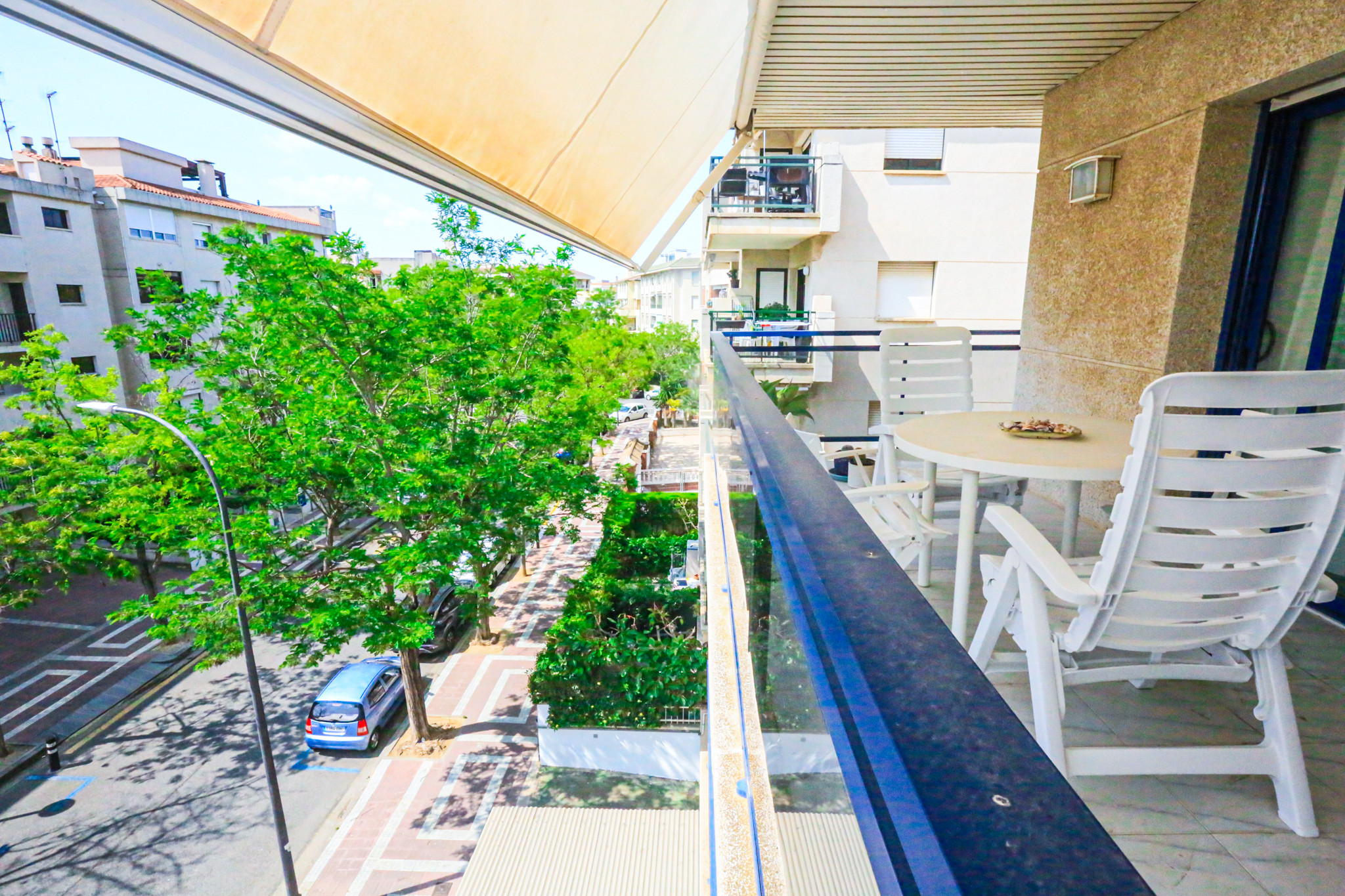 Spacious living-dining room and a large terrace with awnings.